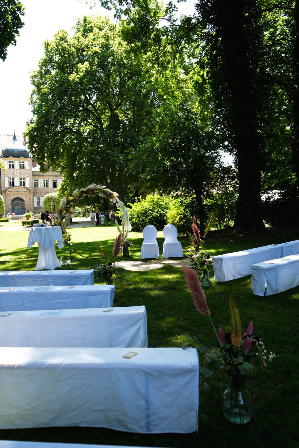 Der Aufbau für Eure Hochzeitsfeier auf Schloss Dürrenmungenau findet meist am Vortag statt. Ihr könnt gerne zu den allgemeinen Aufbau- und Vorbereitungszeiten kommen, um Dekorationen zu arrangieren. Außerhalb dieser Zeiten ist das nur nach Absprache möglich und mit einem Aufpreis verbunden.